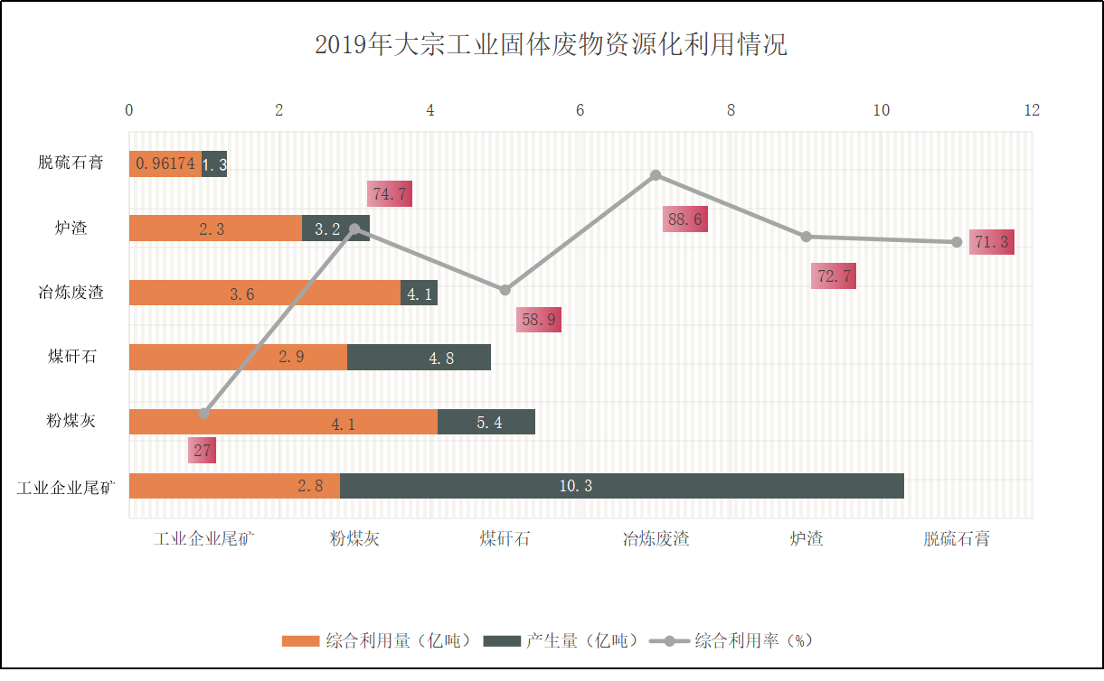 就大宗工業(yè)固體廢物資源化利用的情況來(lái)說(shuō),年報(bào)顯示: