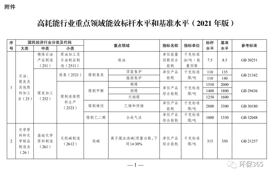 附件:高耗能行業(yè)重點領域能效標桿水平和基準水平(2021年版)