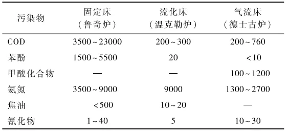 同時煤中的n、s、cl和金屬元素在氣化時部分轉化為氨、硫化氫、氰化物和金屬化合物;co和水蒸氣生成少量甲酸,繼而和氨反應生成甲酸銨,這些物質大部分溶解于氣化過程的洗滌水﹑洗氣水中。煤氣化廢水主要含有高有機物﹑高氨氮、無機鹽和懸浮物,是一種典型的難降解有機廢水,且不同的氣化工藝產生的氣化廢水水質差別較大,具體見表1。含鹽廢水主要包含生產過程中循環水系統排污水、脫鹽水系統排污水及鍋爐排污水等,硬度大,含鹽量高。通常,循環水系統排污水 tds濃度為1800~2600 mg/l,脫鹽水系統排污水tds濃度為2500~ 3500 mg/l。含鹽廢水中的高鹽廢水主要為反滲透濃水,此類廢水的tds、硬度、堿度、含鹽量均較高,有機物濃度低但可生化性較差,處理難度大,通常需要專門再生回用處理。現代煤化工高鹽廢水中鹽分含量高,通常可達到3000 ~15000 mg/l,所含主要無機離子為na+、cl-、so42-,占無機離子總量的90%以上。