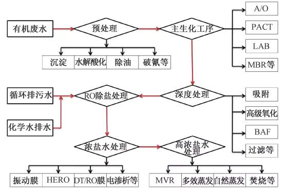 圖1 現代煤化工廢水近零排放技術集成典型工藝流程