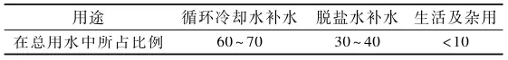 現代煤化工主要通過煤氣化產出合成氣,將合成氣進行變換、脫酸等工序后進一步合成最終產品。根據現代煤化工項目用水特點,從用水點分析,工藝直接應用的新鮮水在總用水量中所占比例較低,新鮮水主要用于補充循環冷卻水及制取脫鹽水,具體比例見表3。因此,現代煤化工直接產生的含鹽廢水主要包含循環冷卻水排污水以及脫鹽水排污水。隨著循環冷卻水用量的增大及濃縮倍數的增加,廢水經過逐級利用和處理后,最終會產生大量的濃鹽水,不僅會抑制微生物的活性,導致廢水處理系統不能正常運行,還使得出水tds超標,污染水環境。現代煤化工含鹽廢水的處理主要包含低鹽廢水處理、濃鹽水處理以及高濃鹽水處理。