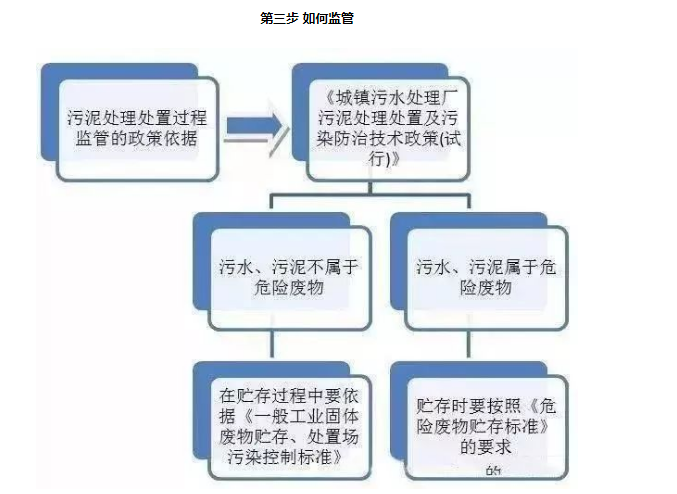 依據由環境保護部聯合國家發改委、公安部發布自2021年1月1日起開始施行的《國家危險廢物名錄》和《危險廢物鑒別標準-通則》,結合住建部、環保部、科技部于2009年2月28日聯合發布的《城鎮污水處理廠污泥處理處置及污染防治技術政策(試行)》,五步即可判定污水污泥是否屬于危險廢物,如下圖所示: