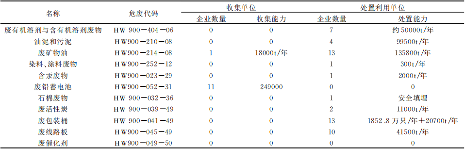 依據(jù)核準(zhǔn)經(jīng)營(yíng)范圍和類別,截至2019年底,無(wú)錫收集處置汽修行業(yè)危險(xiǎn)廢物的經(jīng)營(yíng)單位約有30多家,尚無(wú)一家能全部收集處置汽修行業(yè)危險(xiǎn)廢物的經(jīng)營(yíng)單位,具體情況見表2。