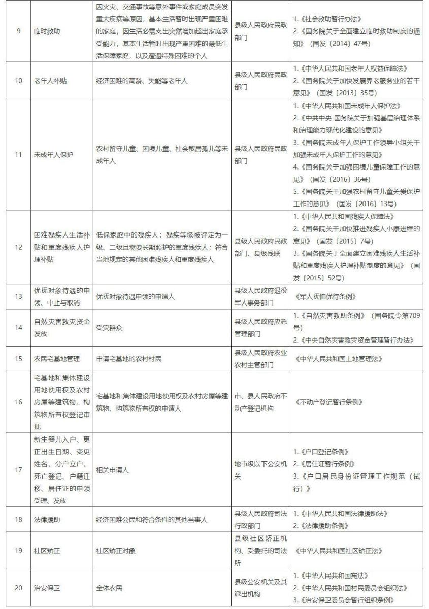 (九)警務(wù)和法律服務(wù)。做實(shí)農(nóng)村警務(wù)工作,健全完善聯(lián)防聯(lián)治機(jī)制。推動(dòng)普法宣傳、人民調(diào)解、法律援助等服務(wù)全覆蓋,充分發(fā)揮村法律顧問作用。強(qiáng)化對社區(qū)矯正、社區(qū)戒毒社區(qū)康復(fù)、刑滿釋放人員幫扶救助和精神障礙社區(qū)康復(fù)服務(wù)。