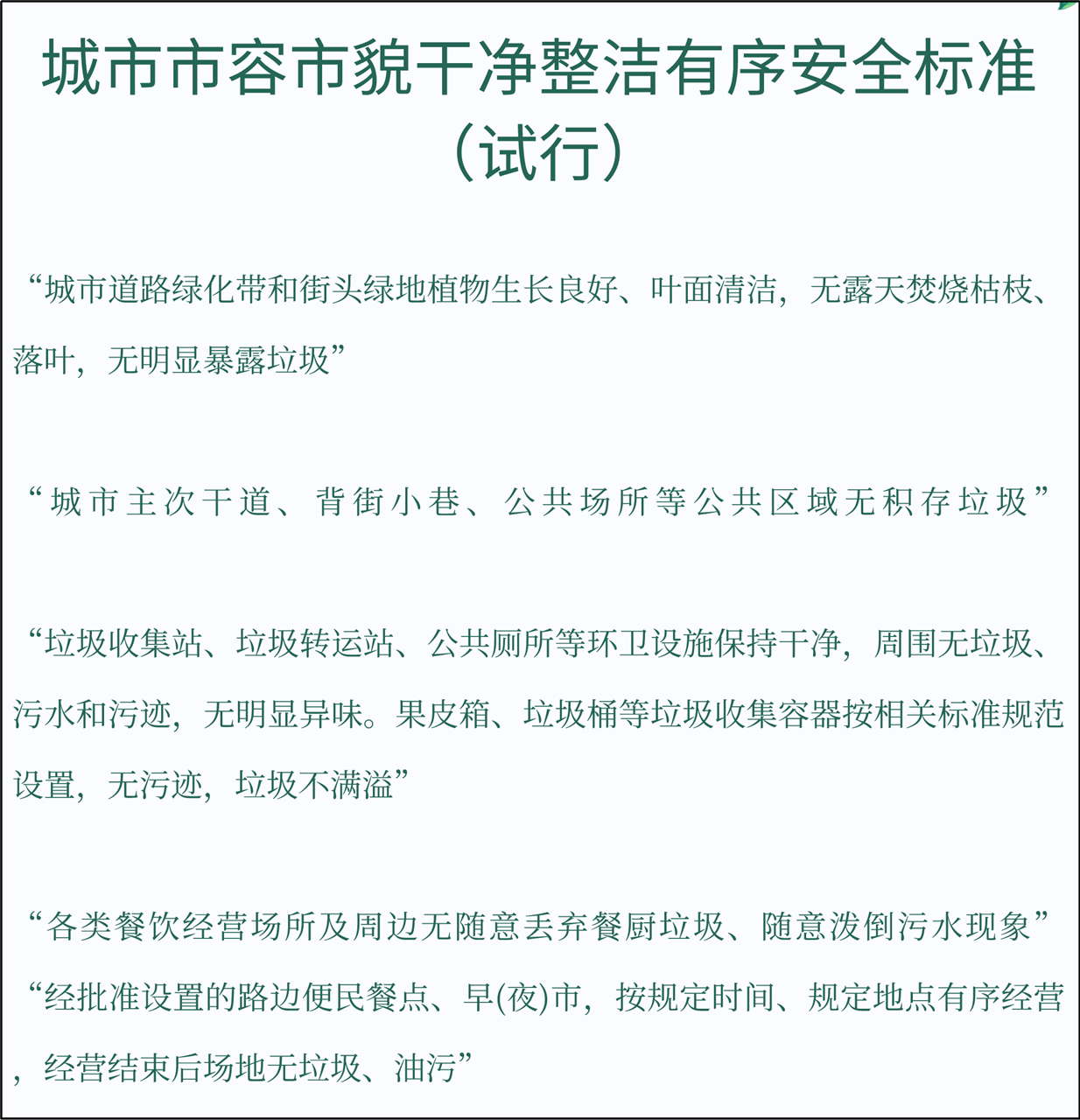 住建部剛剛新發布的《城市市容市貌干凈整潔有序安全標準(試行)》詳細規定了,什么才算得上“干凈、整潔”的市容。