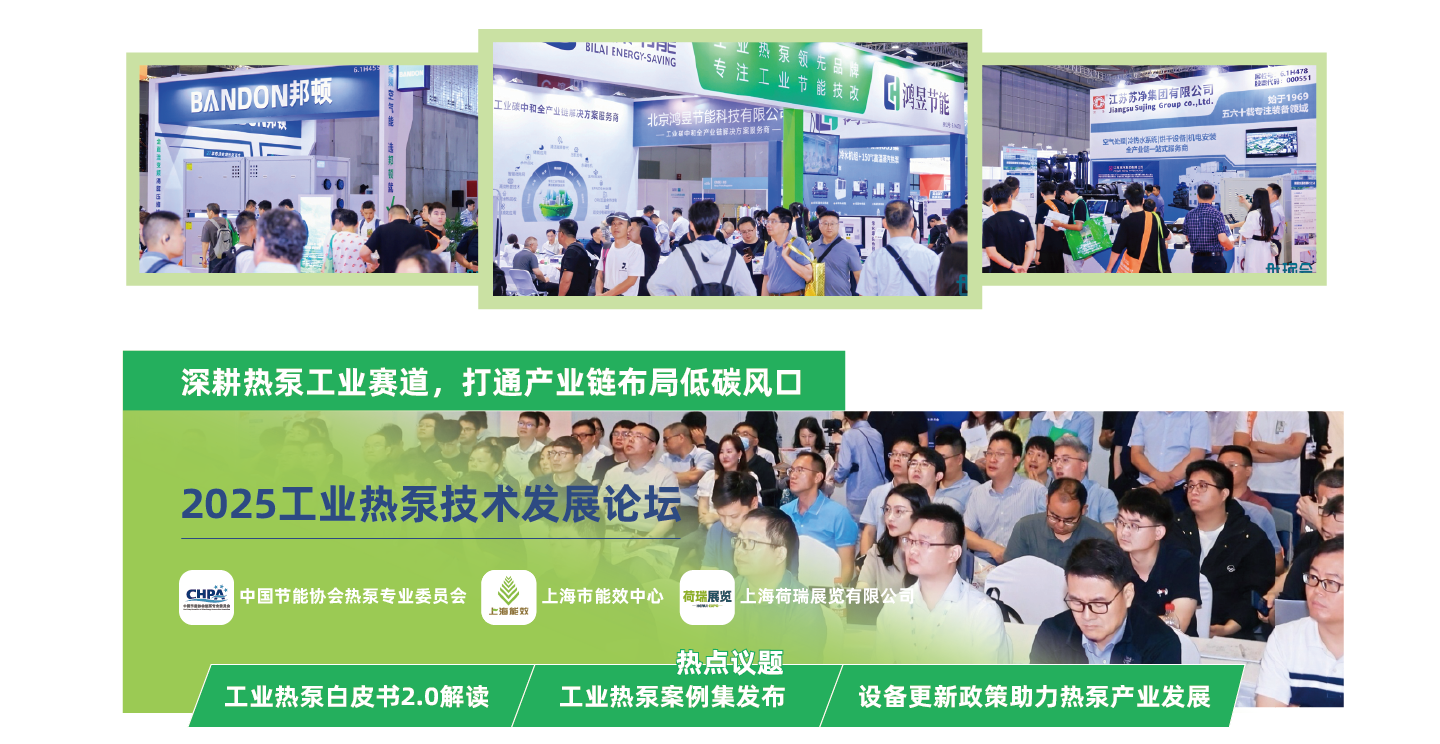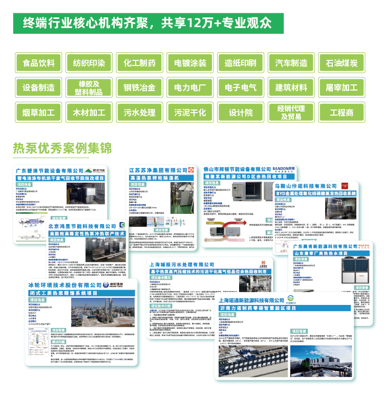 2026年上海綠色智造與節能技術展旗下的工業熱泵主題展將于2026年6月9-11日在上海|國家會展中心(虹橋)盛大啟幕工業熱泵主題展預計規模達10,000平米,將吸引終端領域專業觀眾20,000多名,展會將深度布局行業終端,打造工業熱泵示范項目,助力企業直面新能源、電鍍涂裝、石油化工、電力工廠、紡織印染、食品飲料、污泥干化等領域終端及環保領域用戶。