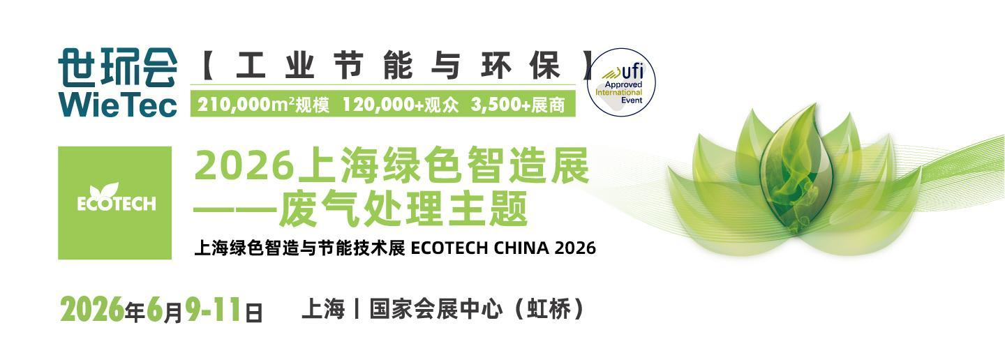 上海綠色智造展——廢氣處理主題展區將于2026年6月9-11日在上海|國家會展中心(虹橋)盛大啟幕。2026年展會規模預計將達到20,000平米,吸引600多家品牌企業參展,匯聚30,000+來自電子、半導體、新能源、石化、化工、制藥、鋼鐵、冶金、涂裝等領域及環保領域的專業用戶,為參展企業搭建“技術展示+政策解讀+商業對接”的一站式交流平臺。